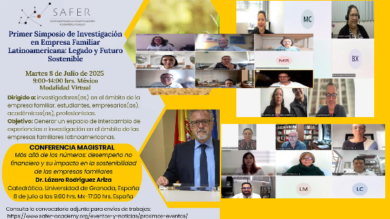 El 8 de julio ha tenido lugar el Primer Simposio de Investigación en Empresa Familiar Latinoamericana: Legado y Futuro Sostenible organizado por la Sección SAFER Latinoamérica. Este evento, dirigido a investigadores/as en el ámbito de la empresa familiar, estudiantes, empresarios/as, académicos/as, profesionales ha tenido como objetivo generar un espacio de intercambio de experiencias e investigación en el ámbito de las empresas familiares latinoamericanas.