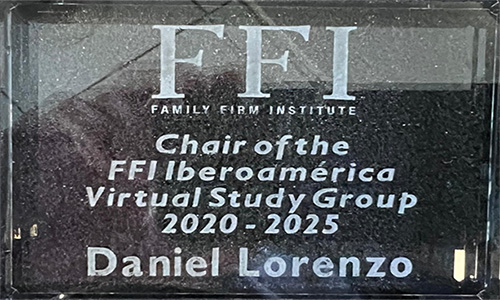 Nuestro compañero y tesorero Daniel Lorenzo ha recibido un reconocimiento al terminar su mandato como Chair del Virtual Study Group Iberoamérica (VGSI) del Family Firm Institute (2020-2025).